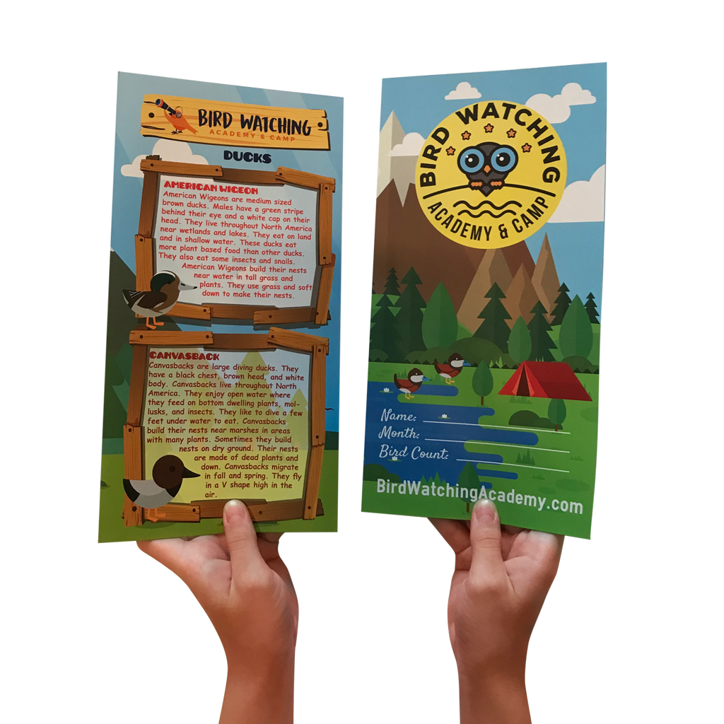 - 1 bird watching map (size – unfolded 11×17-inch)
