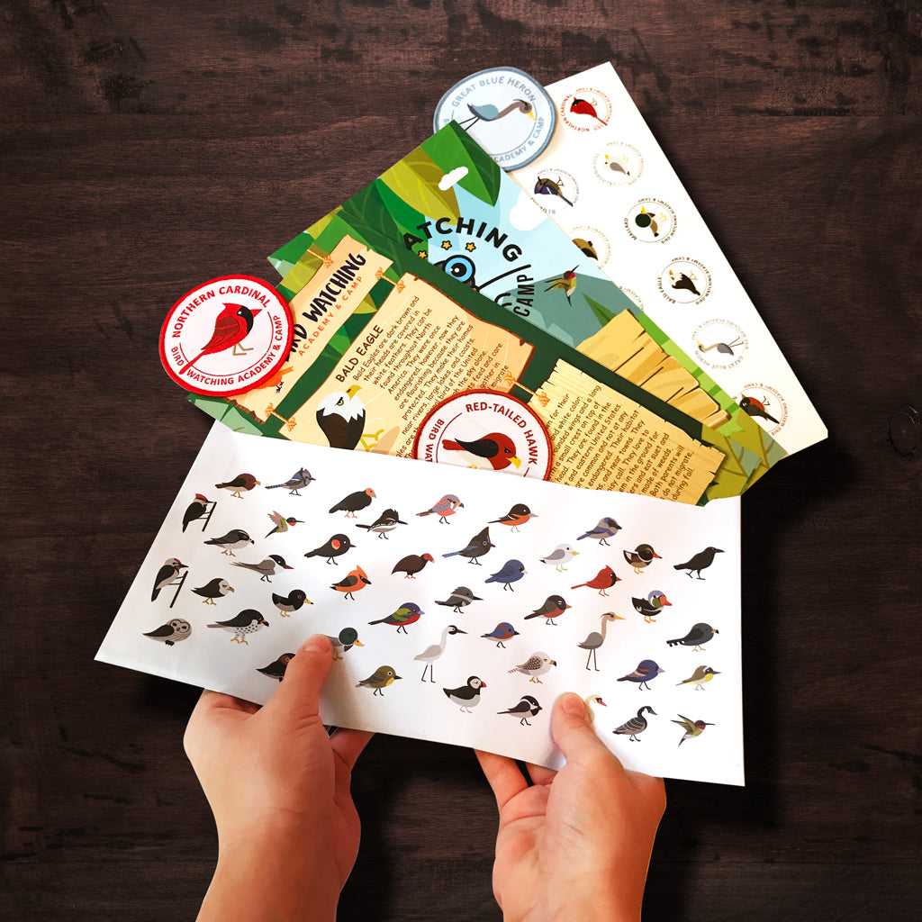 The weekly subscription includes 1 new map per week, 24 new bird stickers, and 3 new iron on patches or what we call bird badges.