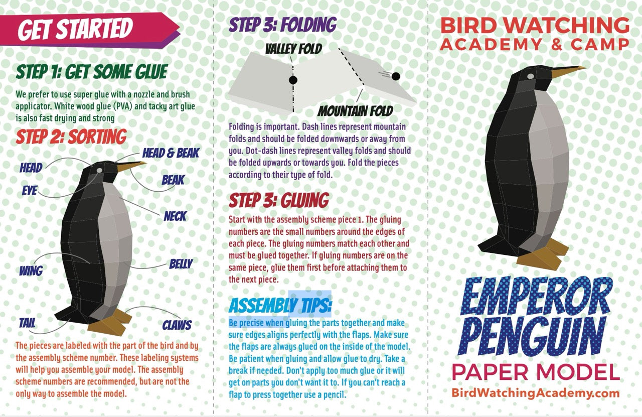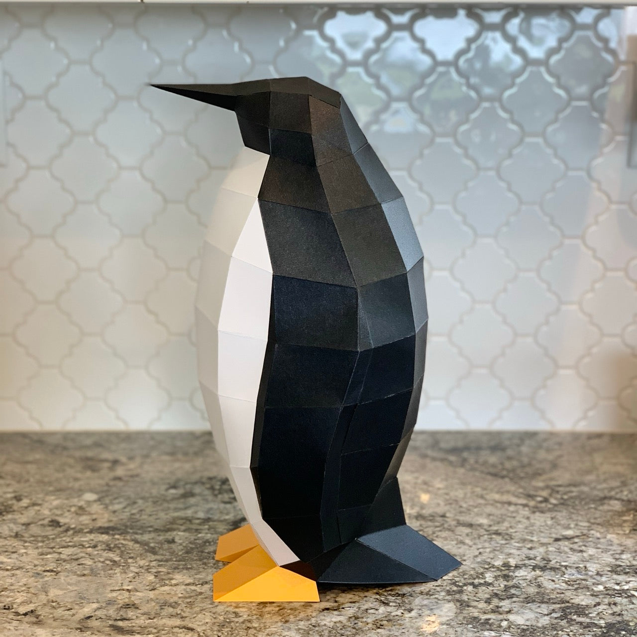 This Emperor Penguin 3D paper craft model is a great way to learn about birds and have fun doing it. This model is like a puzzle where you have to connect the pieces together. It is designed for adults or skilled crafty teens. The difficulty level is medium to hard but is fun.