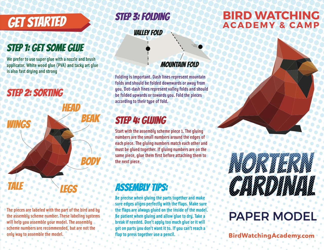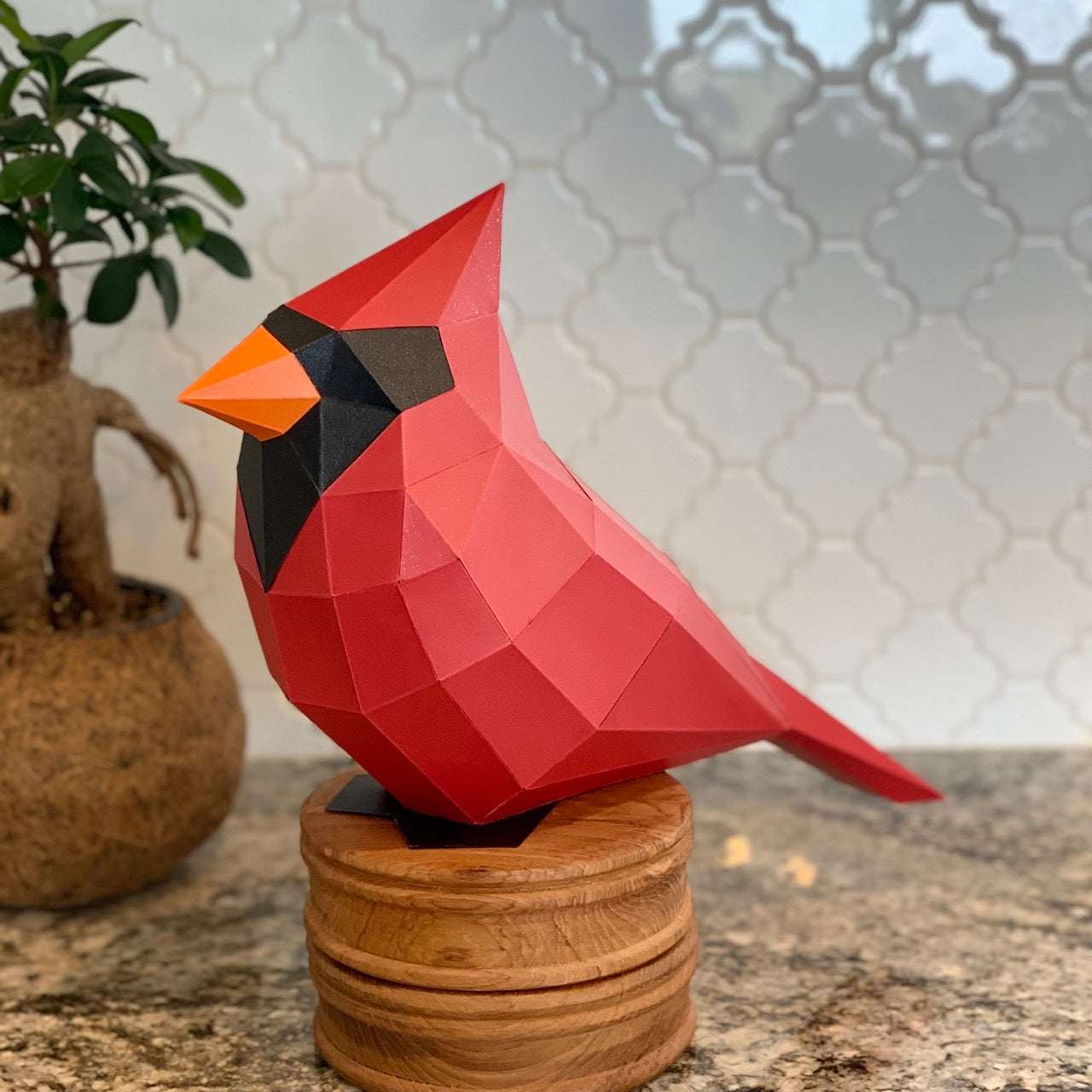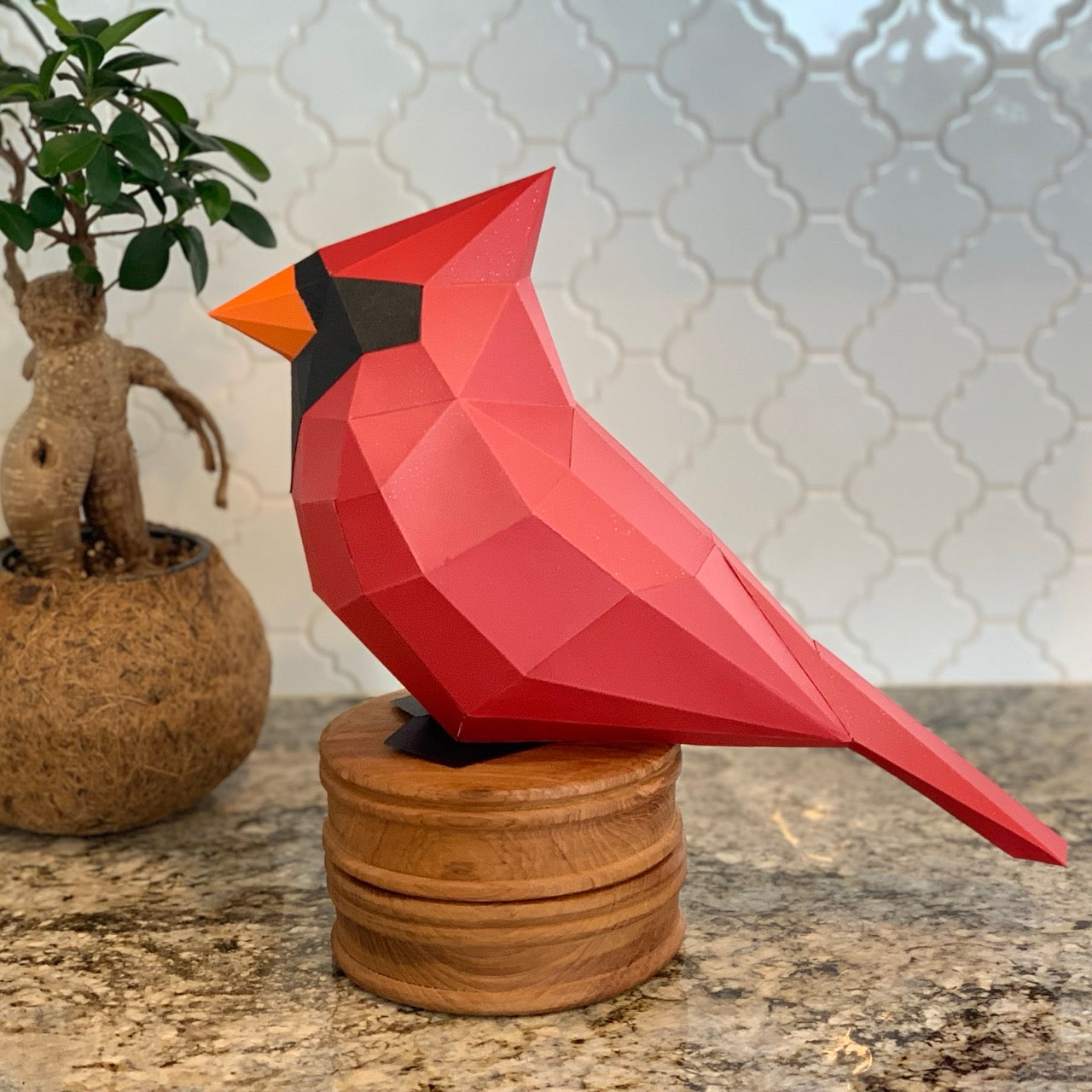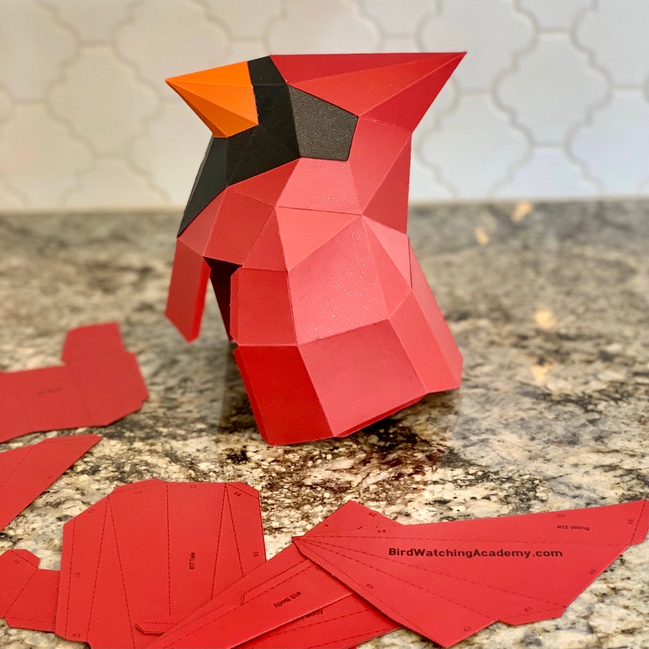 This Northern Cardinal 3D paper craft model is a great way to learn about birds and have fun doing it. This model is like a puzzle where you have to connect the pieces together. It is designed for adults or skilled crafty teens. The difficulty level is medium to hard but is fun.